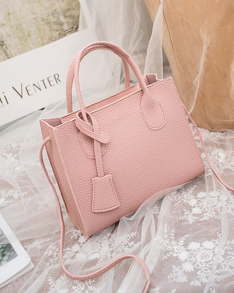 Lychee Pattern Shoulder Bag With Handle, Pink