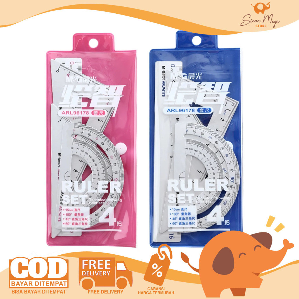 M&G Alumunium Alloy Ruler Set 4Pcs Alat Ukur Set / Student Math Set