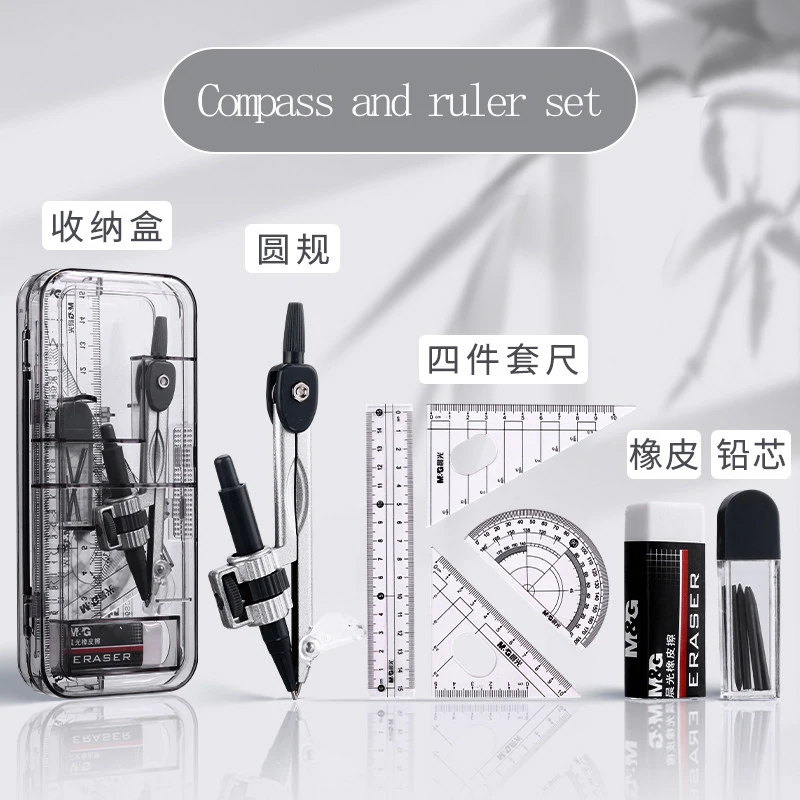 M&G Compass Set, with Compass, Ruler, Triangle, Protractor, Eraser, Lead for Students