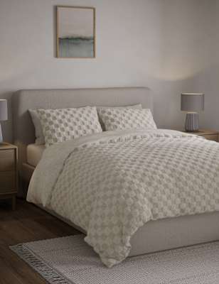M&S Collection Fleece Checkerboard Textured Bedding Set - Cream, Cream