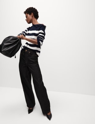Add some '70s-inspired flare to your off-duty looks with this crisp pair of jeans. Classic wide leg fit with a flattering high waist and added stretch for comfort. Detailed with a permanent front crease for a neat finish and tailored appearance. Fabric has a rinsed wash for cleaner and smarter look.n M&S Collection: easy-to-wear wardrobe staples that combine classic and contemporary styles.