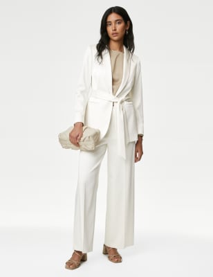 These trousers are crafted from smooth satin-look fabric for a luxurious effect. They're designed with wide legs and a high waist to create a flattering shape. A side zip with a jigger button offers a secure fastening. With added stretch in the fabric and a lining for comfort. n M&S Collection: easy-to-wear wardrobe staples that combine classic and contemporary styles.