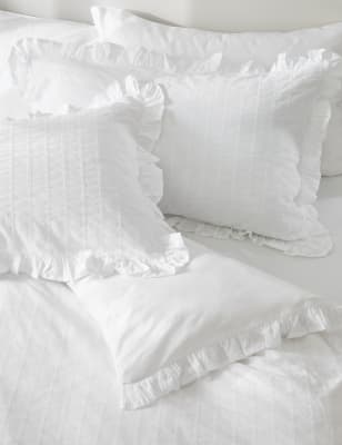 Add a fresh look to your interior with this bedding set, complete with pretty French ruffle edges. It's crafted from soft pure cotton for a comfortable feel as you dream and features a subtle embroidered pattern.