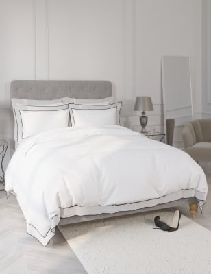Bring hotel comfort to your own home with this luxurious cotton-blend bedding set. The edges are trimmed with contrast embroidery for a timeless aesthetic. This stylish set has a breathable feel and features button fastenings for a traditional finish. Made with recycled polyester.