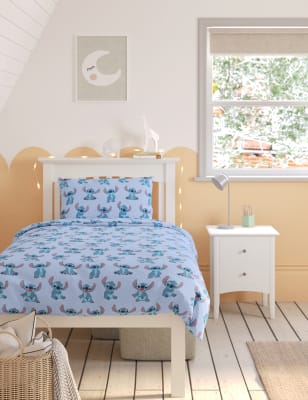 Fans of Lilo & Stitch™ will love this cotton-blend bedding set. It captures the animation's playful nature with a print made up of different Stitch motifs. The fabric is treated with our StayNew™ technology for longer-lasting colour and finish. It's also quick-drying, non-iron, and has a zip fastening so laundering is a breeze.