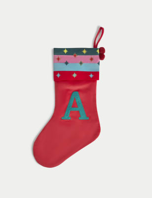 Personalise your festive decor with this alphabet stocking. Crafted from plush velvet, this charming design is available in every letter of the alphabet. The striped cuff is adorned with sparkly embroidered stars and a playful pom pom trim.