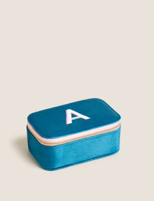 Store jewellery and other precious items in this custom trinket box. It comes in a plush velvet fabric, with an embroidered letter on top for a personalised touch. Its sturdy rectangular construction keeps your possessions safely stowed - perfect for when you're travelling with it.