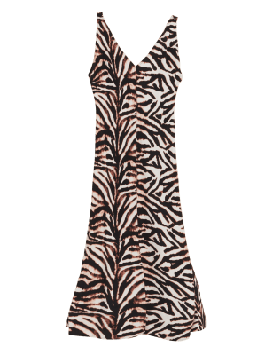 Stay cool on summer days with this breezy animal print column dress. This sleeveless style is cut to a regular fit, with a midi-length hem and a v-neck for easy wear. A tie detail at the back adds an elegant finish. M&S Collection: easy-to-wear wardrobe staples that combine classic and contemporary styles.