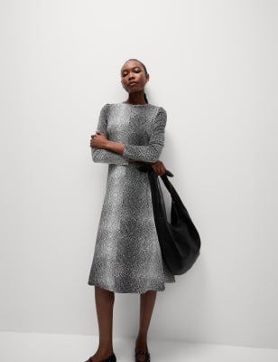 Opt for a stylish look with this column dress, featuring a striking all-over print. It's made in a regular fit and features a round neckline and sophisticated midi-length hemline. Added stretch in the jersey fabric ensures a comfy feel.nnM&S Collection: easy-to-wear wardrobe staples that combine classic and contemporary styles.