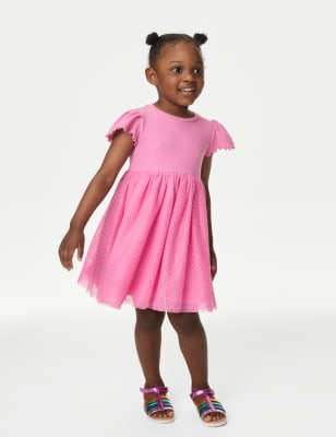 M&S Collection Vestido de topos de algodón de tul (2-8 años) - Pink, Pink