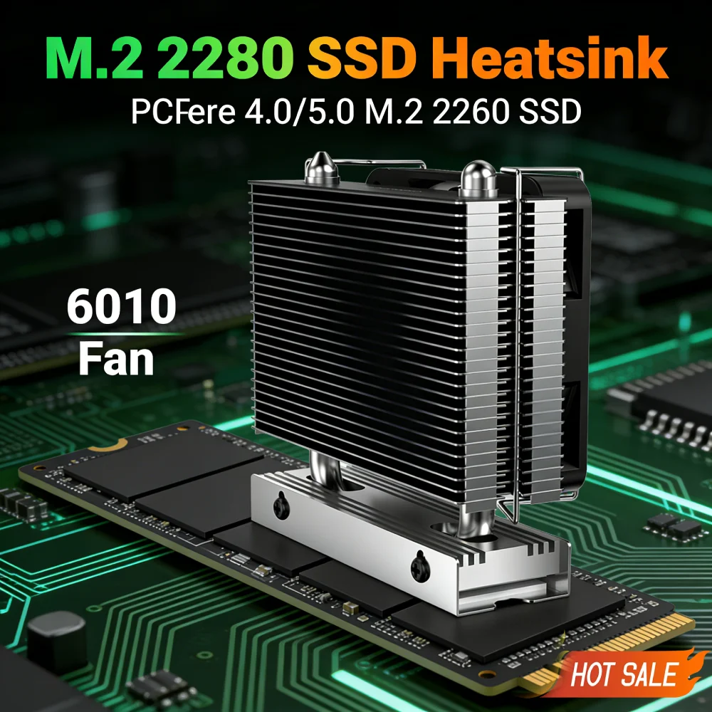 M.2 2280 SSD Heatsink with 6010 Fan Solid State Drive Radiator PCIe4.0 PCIe5.0 Cooling Thermal Pad for Desktop PC