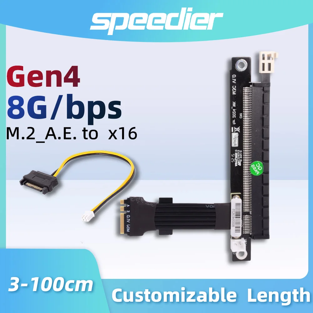 M.2 Key A.E WiFi NGFF To PCIe 1X 4X 8X 16X Extension Adapter Card Riser A E for PCI-E 4.0 Gen4 Built in Adapter M2 8x 3-100cm