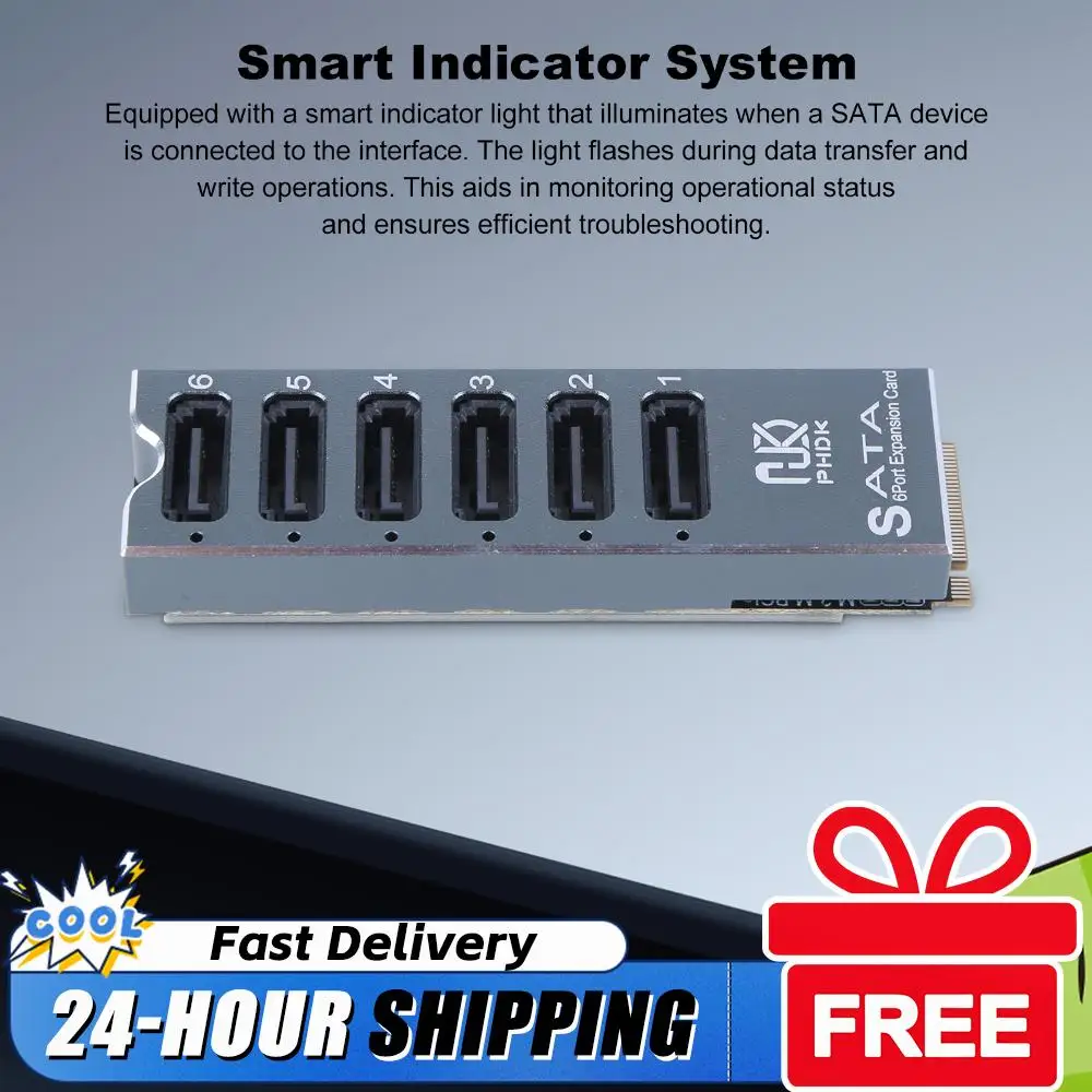 M.2 M KEY NVMe To 6 Ports SATA Convert Card with Smart Indicator M.2 NVMe To 6 Ports SATA 3.0 Expansion Card ASM1166 Chip