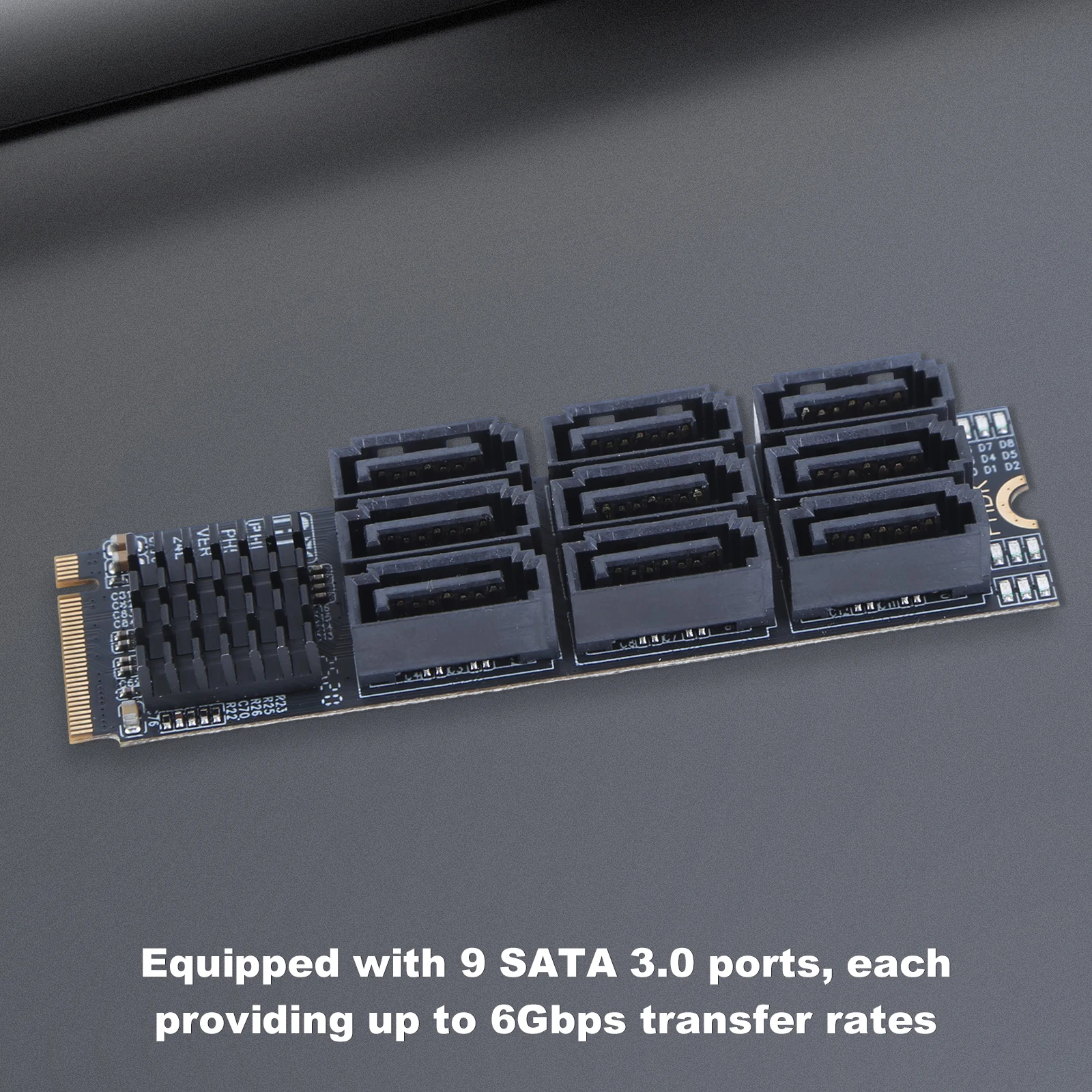 M.2 NVME To SATA 3.0 Converter PCIE 3.0 X2 Hard Disk Capacity M.2 NVME M-Key To SATA 9-Port Expansion Card for Desktop