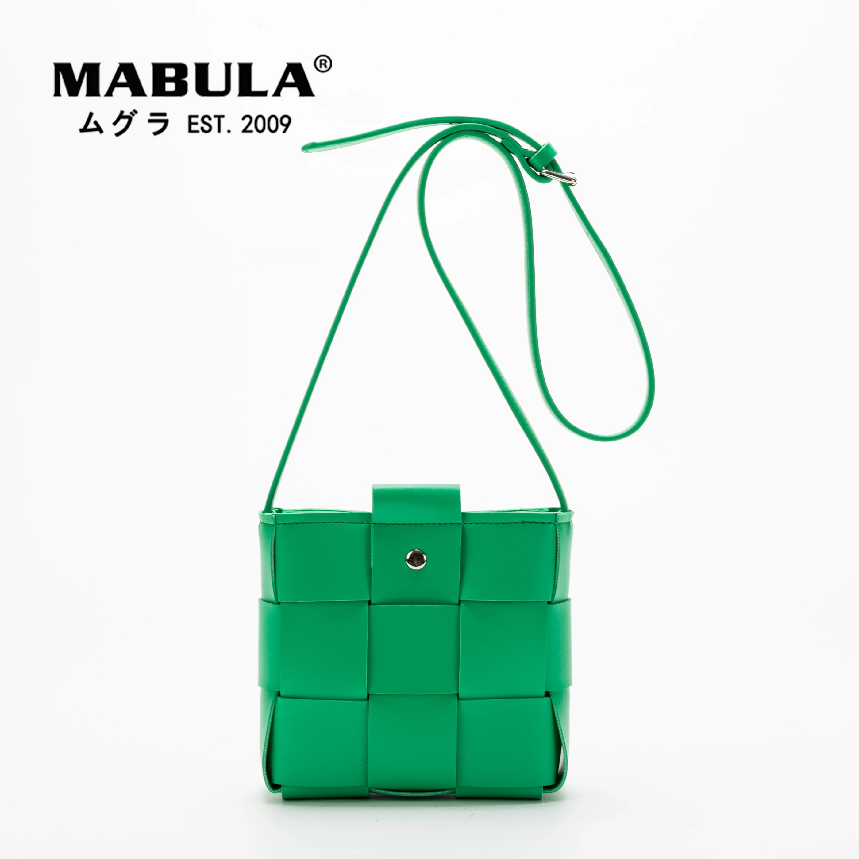 MABULA зеленый плетеный кожаный мешок через плечо сумка для женщин ручной работы квадратный кошелек на плечо 2022 Маленькая женская сумка на рем...