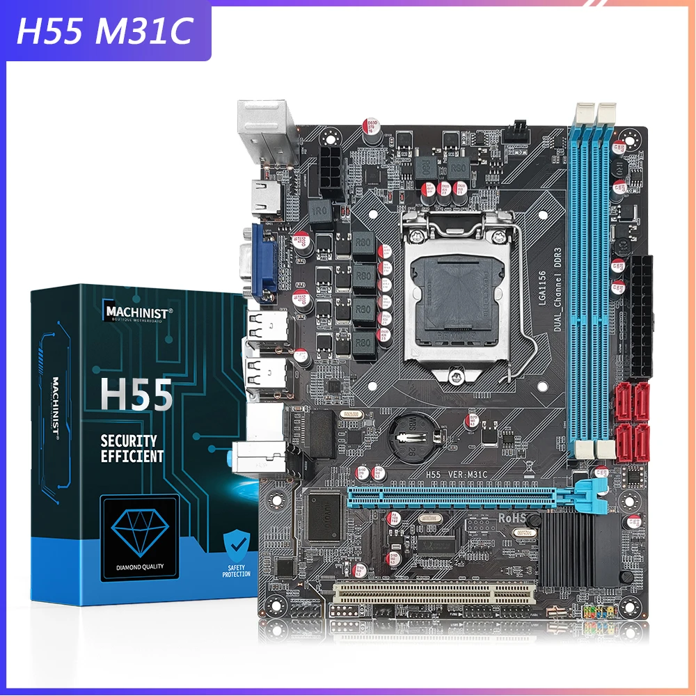 MACHINIST H55 материнская плата LGA 1156 Pupport Intel Core I3 I5 I7 Xeon E5 CPU DDR3 двухканальная память для настольного компьютера ОЗУ для освещения