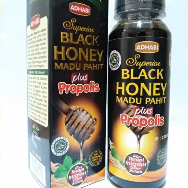 MADU HITAM PAHIT ADHABI RUQYAH PLUS PROPOLIS diracik & diramu dari berbagai macam jenis ektrak herbal pilihan yang berkualitas yang sudah teruji klinis mampu mengatasi berbagai macam penyakit MEDIS & NON MEDIS .Diolah & dikemas secara higienis ,serta telah diruqyah oleh praktisi ruqyah syar'iah sehingga mampu mengobati penyakit non medis (atas izin Allah).