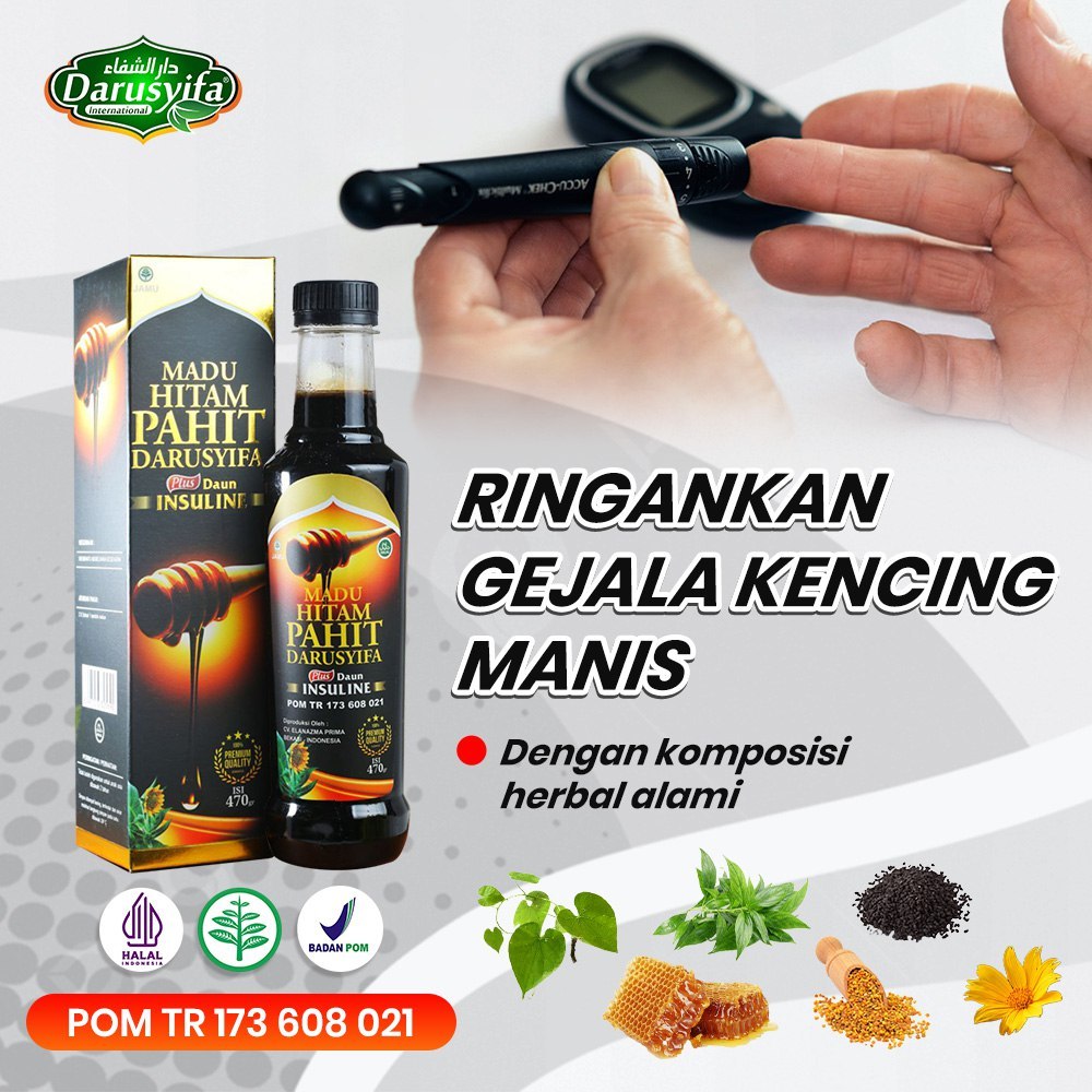 Madu Hitam Pahit Insuline dapat juga untuk menyeimbangkan kadar gula dalam darah sehingga madu ini sangat di anjurkan bagi penderita DIABETES.