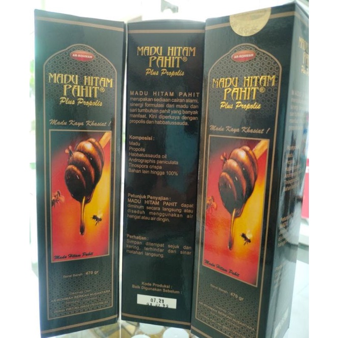 Madu Hitam Pahit merupakan sediaan cairan alami, sinergi formulasi dari madu dan sari tumbuhan pahit yang banyak manfaat. Kini diperkaya dengan propolis dan habbatussauda.