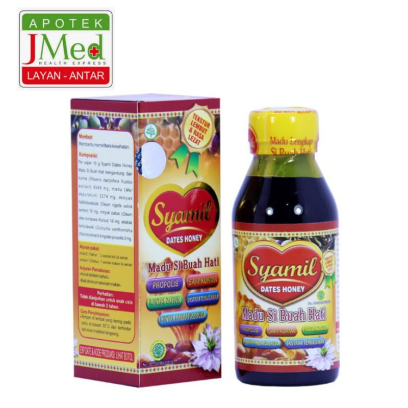 Adapun khasiat Komposisi Madu Syamil (Madu Lengkap si Buah Hati / Syamil Dates Honey), insya Allah bermanfaat untuk mencerdaskan otak, meningkatkan stamina dan daya tahan tubuh, membantu pemulihan DBD (Semam berdarah), menambah nafsu makan, menurunkan demam panas tinggi, melancarkan pencernaan, membantu menyembuhkan batuk,pilek, dan radang tenggorokan, mencegah kejang-kejang, meningkatkan pertumbuhan otot dan tulang, membantu menyembuhkan amandel, sariawan, asma, TBC, flek, Kanker usus, cacingan, sembelit, dll