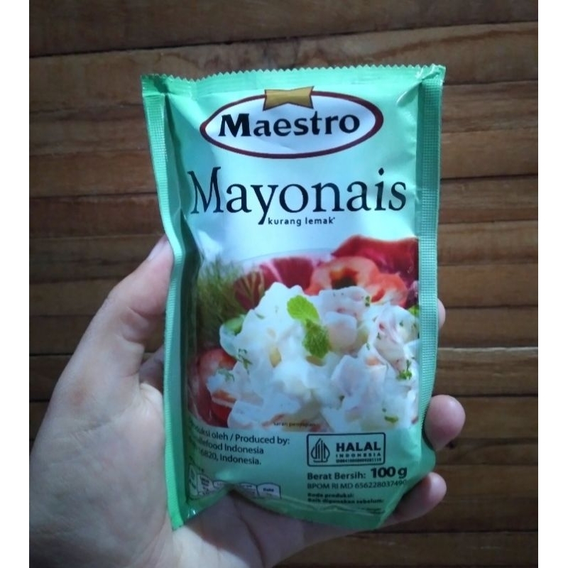 MAESTEO MAYONES DIGUNAKAN UNTUK SAOS SALAD/SANDWICH/HODDOG/SOSIS/DIMSUM/ DLL. UKURAN 100 GRAM. EXP MEI 2026