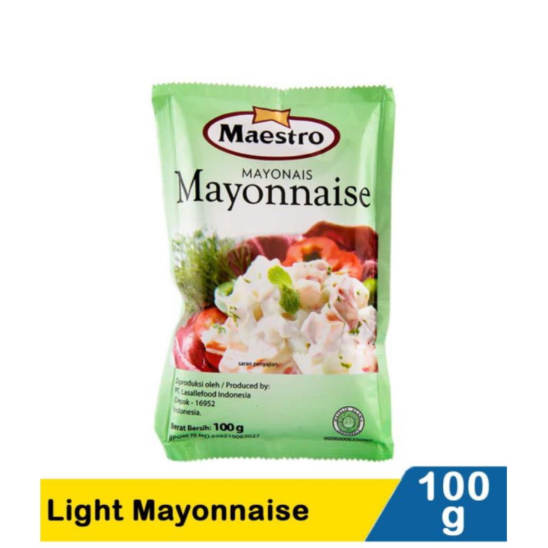 MAESTRO Mayonnaise Pouch 100gr merupakan saus yang terbuat dari bahan-bahan pilihan, yang mampu meningkatkan cita rasa masakan Anda. Saus mayonnaise ini terbuat dari berbagai bahan, yang diolah menggunakan teknologi modern sehingga menjamin kebersihan dan tetap terjaga cita rasanya. Saus mayonnaise ini sangat cocok Anda sajikan untuk beragam jenis masakan favorit Anda di rumah.