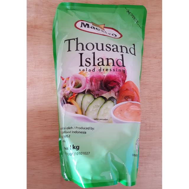 Produk olahan thousand island dari MAESTRO tersedia dalam kemasan refill / pouch dengan berat 1 kg .