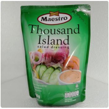 Maestro Thousand Island dengan rasa gurih menambah cita rasa masakan untuk sajian seluruh keluarga. Dapat digunakan sebagai saus campuran pada salad dan saus olesan dalam sandwich