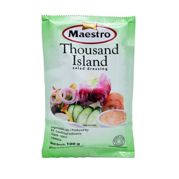 Saus Thousand Island untuk salad atau makanan lainnya, terbuat dari bahan-bahan pilihan yang diolah secara modern dan higienis dan memiliki rasa yang lebih nikmat