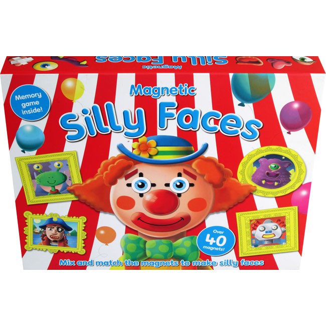 mainkan game memory atau mix and match untuk menciptakan wajah konyol dengan menggunakan magnetic silly faces box set yang seruu ini.