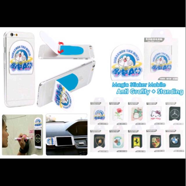 *NEW MAGIC STICKER MOBILE ANTI GRAVITY + STANDING "HELLOKITTY, DORAEMON, ROSE, BEAR, MOLANG, SPORT CARS" + PACKING/1SET=20PCS(UNIVERSAL FOR ALL SMARTPHONE)