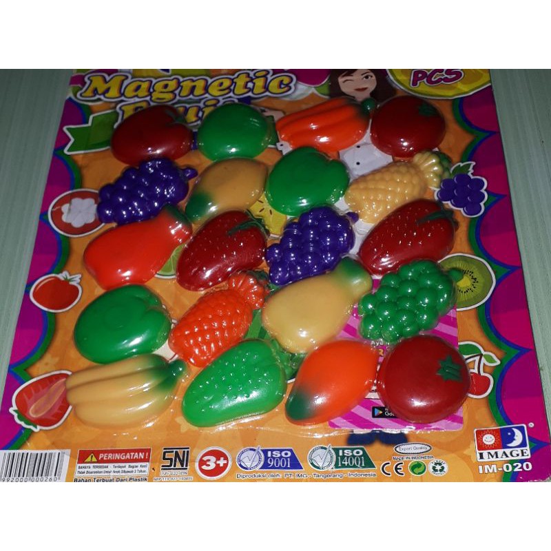 magnetic fruits adalah mainan yg mengandung magnet yg berbentuk buah buhan, cocok untuk di tempel sebagai hiasan pada kulkas dan perbotan rmh tangga lain nya....