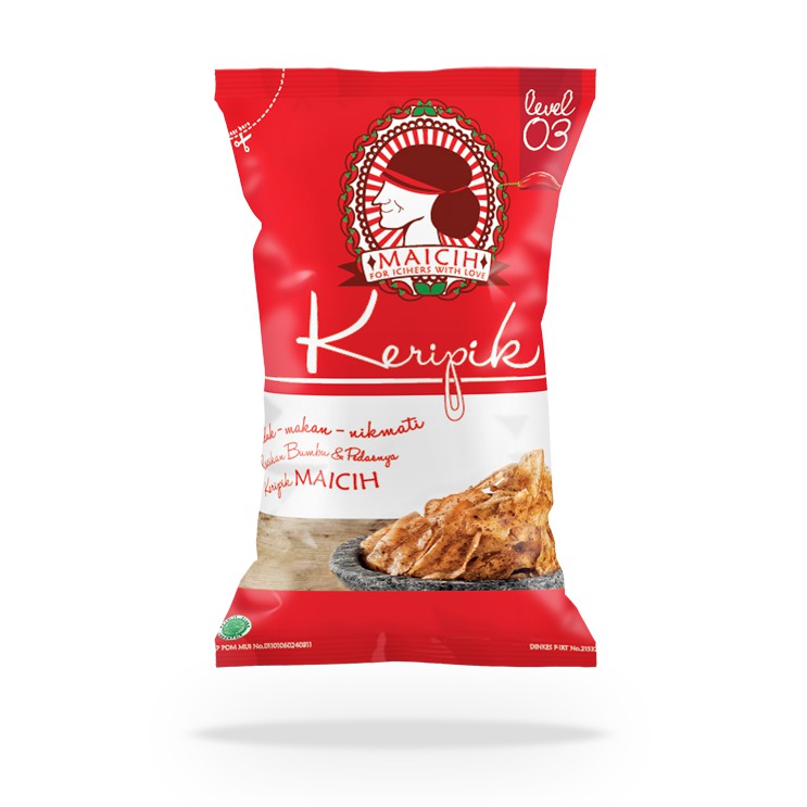 Produk Keripik Maicih dikenal sebagai pelopor makanan ringan tradisional dengan rasa yang pedas dan telah menjadi salah satu makanan ringan yang paling disukai di Indonesia. Keripik Maicih memiliki rasa pedas dengan beberapa level kepedasan dari mulai level 3, 5 dan 10. Masing-masing level dikemas dalam kemasan 125 gram. Hal ini menjadi keunikan produk Keripik Maicih yang banyak digemari oleh konsumennya hingga kini.
