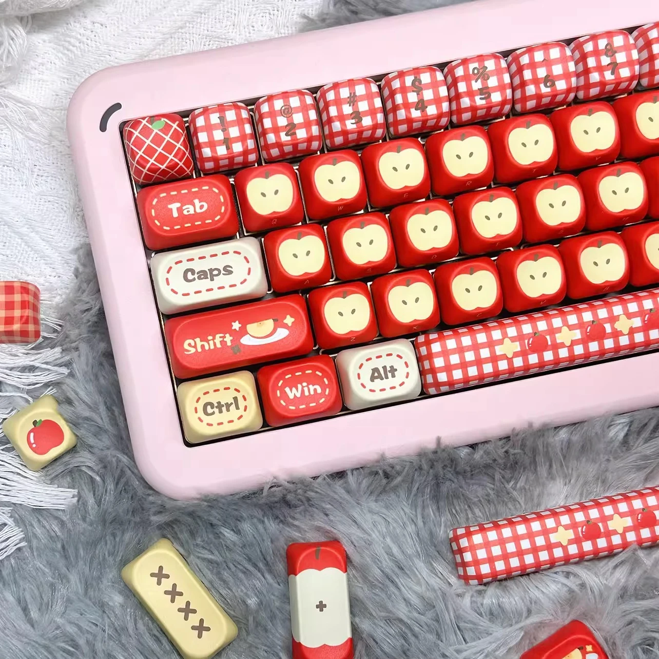 MAIMOOO Red Cute Keycap Apple Town Theme MOA Profile Creative Cartoon Apple-shaped PBT Custom Keycaps for Mechanical Keyboard