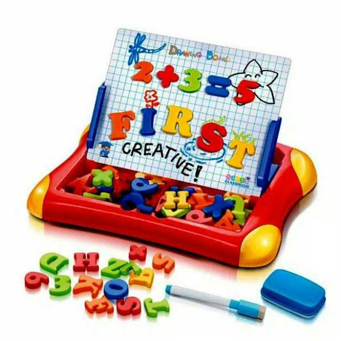 Papan Tulis 2in1 Disini Maksudnya Selain Untuk Menempelkan Huruf /Angka Kepapan (Bermagnet) Juga Bisa Digunakan Untuk Corat Coret Dipapan Tulisnya Dengan Spidol Whiteboard (Disertakan Spidol Dan Erasernya) , Papan Tulis Bisa Diberdirikan Bisa Juga Ditidurkan. Terdiri Dari : - 20 Angka Magnetic - 6 Simbol Magnetic - 1 Buah Papan Tulis - 1 Buah Spidol - 1 Buah Penghapus - 2 Buah Penyangga Papan - Ukuran Kotak 30x25x4 cm - Ukuran Papan 21x16 cm Fungsi Magnetic Board : - Memperkenalkan Angka Dan Huruf Kepada Anak - Melatih Anak Menuliskan Angka Dan Huruf - Merangkai Angka Menjadi Rangkaian Perhitungan Matematika Sederhana - Merangkai Huruf Menjadi Kata - Kata Sederhana