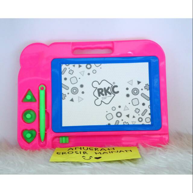 Tulisan atau gambar yg dibuat dipapan tulis ini bisa dihapus dengan mudah. Hanya dengan menggeser tuas yg ada dibagian bawah, maka otomatis gambar atau tulisan anak anda bisa dihapus.