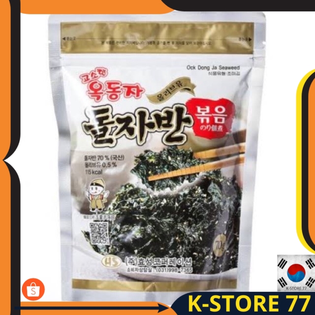 MAKANAN KOREA/MAKANAN KOREA RINGAN HALAL/DOLJABAN RUMPUT LAUT DENGAN OLIVE OIL FRIED SEAWEED U/ NASI