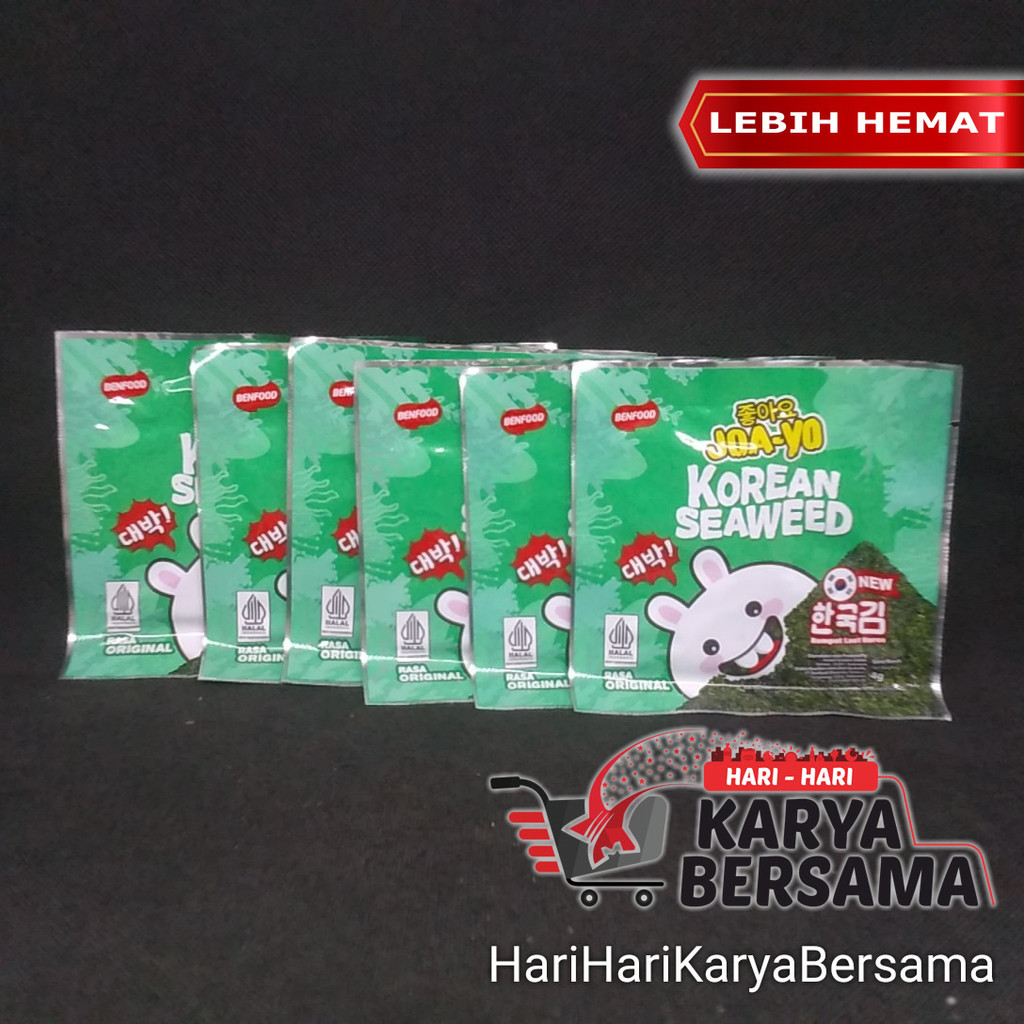 MAKANAN RINGAN CEMILAN RUMPUT LAUT JOA-YO KOREAN SEAWEED RASA ORIGINAL PACK 6'S X 4GR