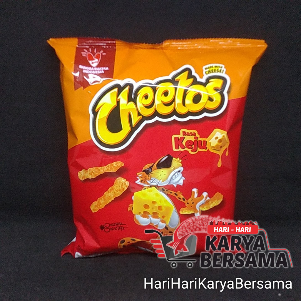 Cheetos Rasa Keju 120g merupakan makanan ringan berbahan dasar jagung yang diproses menjadi stik renyah dan dibumbui dengan rasa keju. Camilan ini memiliki tekstur garing dan rasa gurih yang khas, cocok dinikmati saat bersantai atau sebagai teman di waktu senggang.