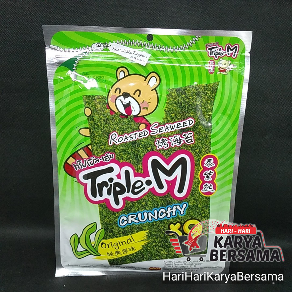 MAKANAN RINGAN RUMPUT LAUT TRIPLE M ROASTED SEAWEED ORIGINAL FLAVOUR 9'S X 5GR