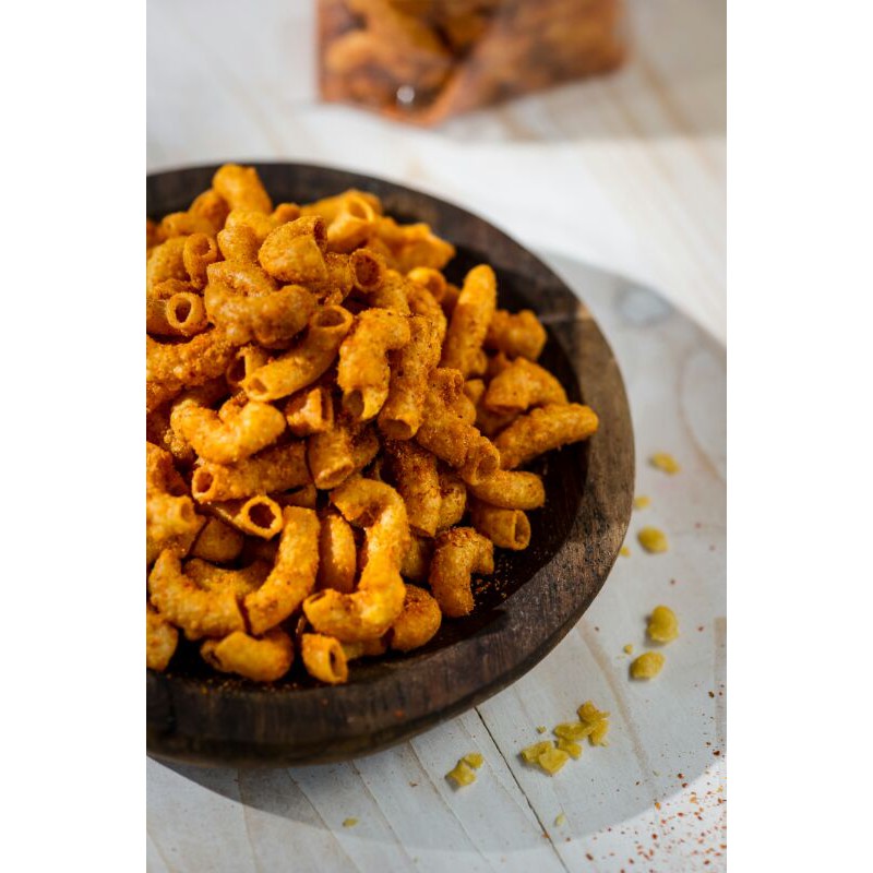 Makaroni skripsi memiliki cita rasa yang gurih dan renyah, sangat cocok di makan sebagai cemilan ataupun pendamping makanan seperti krupuk.
