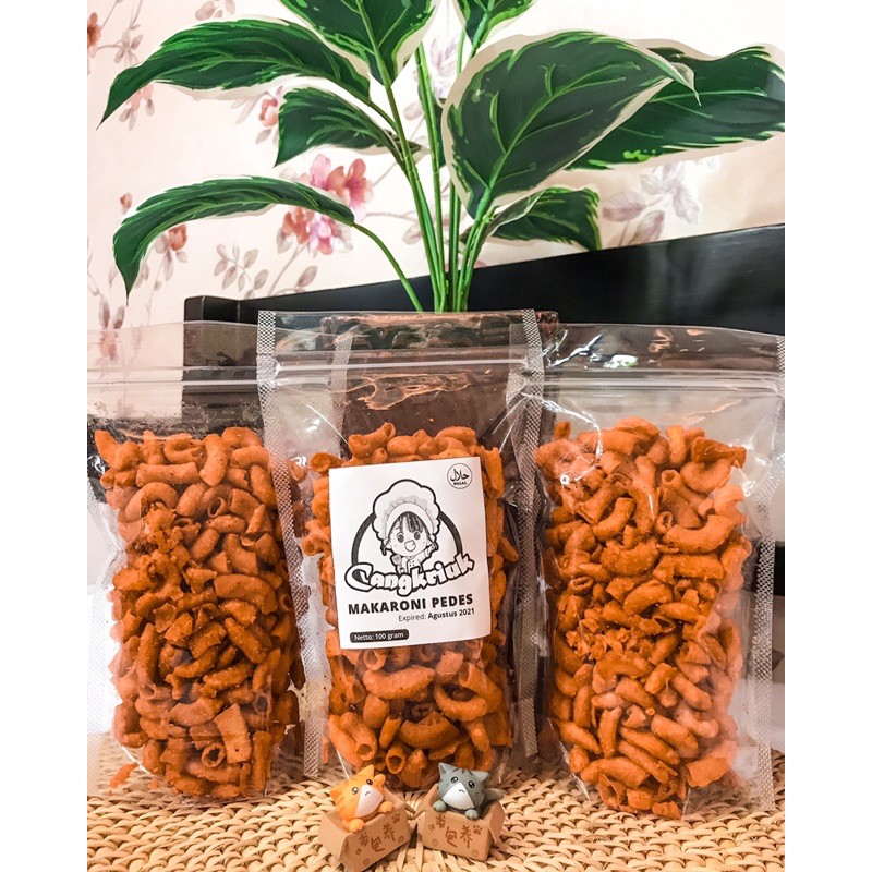 Makaroni yang renyah, gurih dan enak dengan rasa sedikit pedas dan ada manisnya. Cemilan yang cocok untuk menemani aktivitasmu maupun oleh-oleh.