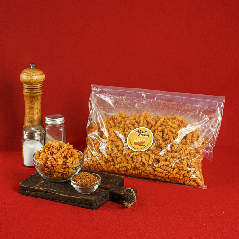 1kg - https://shopee.co.id/MAKARONI-SPIRAL-RASA-PEDAS-ASIN-KEJU-DLL-1000-GRAM-i.1081414613.25509810898