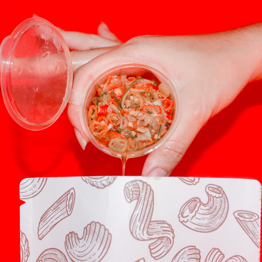 Makaroni Goreng yang dipadukan dengan Sambal Indonesia.