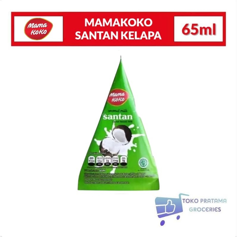 MamaKoko Santan Kelapa 65 ml adalah santan kemasan yang terbuat dari kelapa murni dan diproses dengan sterilisasi UHT. Santan ini aman dikonsumsi, tidak mengandung pengawet dan MSG, serta bersertifikat halal dari MUI.
