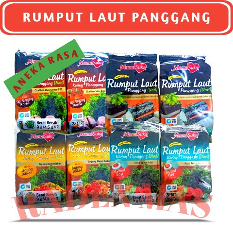 Rumput Laut Kering Panggang Nori MAMASUKA adalah lembaran rumput laut yang dipanggang. Sangat nikmat, dimakan sebagai lauk kecil bersama nasi hangat, sebagai makanan ringan.