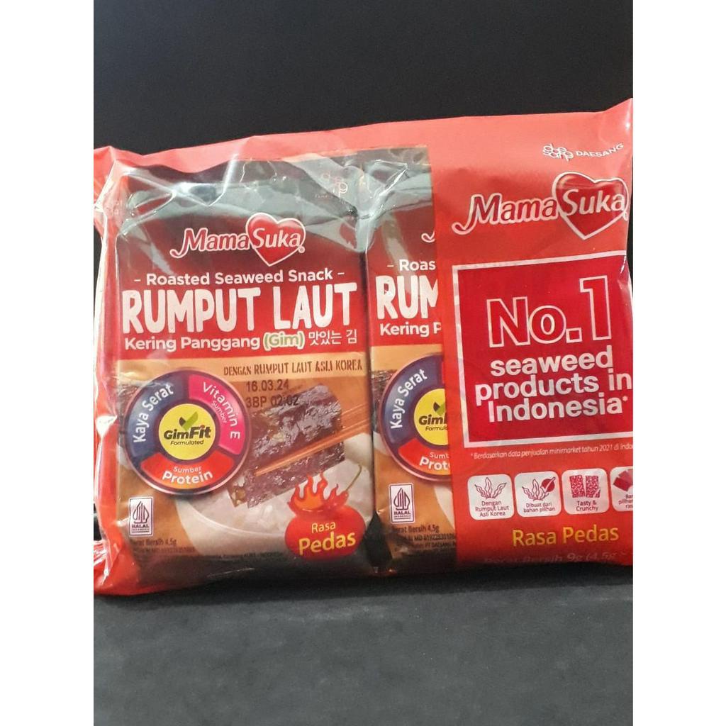 Rumput Laut Kering Panggang Pedas MamaSuka merupakan bahan makanan, berupa lembaran rumput laut yang dipanggang 2 kali dengan minyak zaitun, minyak jagung, dan minyak wijen kemudian ditaburi garam halus. Makanan ini kaya serat, vitamin dan mineral serta rendah kolesterol, karena rumput laut punya manfaat baik untuk kesehatan. Salah satunya meningkatkan kesehatan jantung berkat kandungan asam lemak omega-3 dan antioksidan untuk meningkatkan kesehatan jantung.