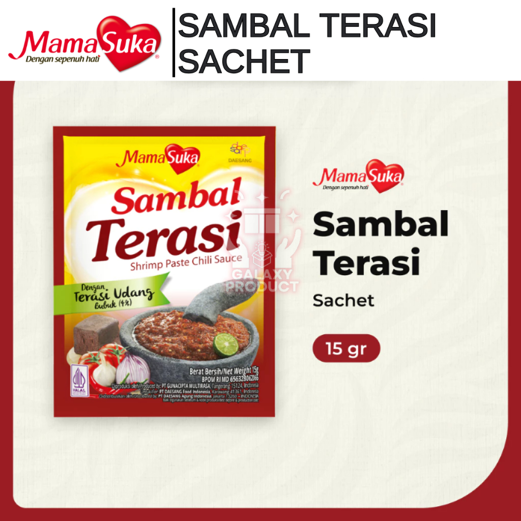 Sambal Terasi MamaSuka merupakan sambal dengan cita rasa khas tradisional, diolah dari cabai segar pilihan, terasi udang asli, dan bumbu yang berkualitas memberikan sensasi sambal ala rumahan. MamaSuka sambal terasi sachet adalah produk sambal instan yang praktis dan berkualitas tinggi. Rasakan sensasi lezatnya sambal terasi yang begitu menggugah selera hanya dengan menggunakan produk praktis ini.