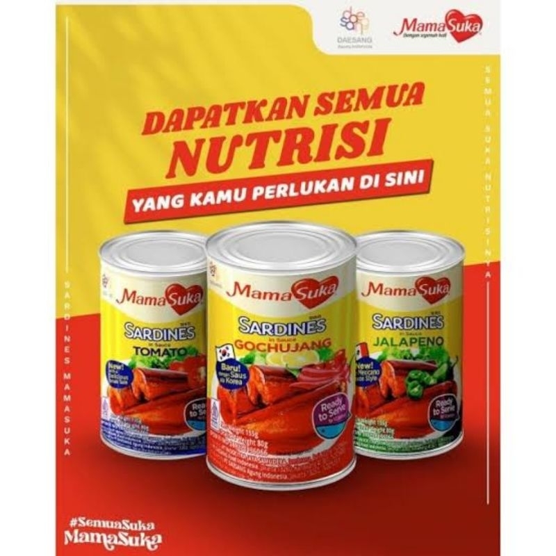 MamaSuka Sarden terbuat dari ikan Sarden pilihan dengan rasa yang enak. Hadir dengan varian rasa Tomat, saus Jalapeno, dan Saus Gochujang.