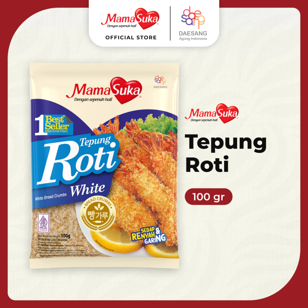 Tepung Roti White MamaSuka terbuat dari tepung roti tawar dengan bahan terigu berkualitas tinggi yang diolah sedemikan rupa sehingga menghasilkan serpihan remah bagus, garing dan harum khas roti tawar. Sangat cocok untuk mebalur/melumuri aneka gorengan, udang, daging ayam filet, ikan, dan lainnya untuk menghasilkan gorengan dengan sensasi rasa khas.